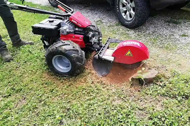 Mit unserer leistungsstarken Baumstumpffräse entfernen wir Wurzelstöcke in jedem Gelände ohne größere Flurschäden. Außerdem schneiden wir damit Fassaden oder Dächer frei. Gartenabfälle, Äste und Schnittgut entsorgen wir fachgerecht.