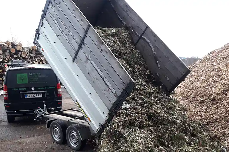 Mit unserem 3-Seiten-Kipper und unseren allradbetriebenen Fahrzeugen bringen wir diverse Materialien von oder zu ihrer ev. auch schwer zugänglichen Liegenschaft.